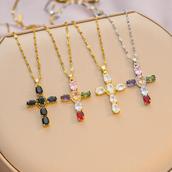 Colgante de collar de Cruz Punk de cristal chapado en oro de 18 quilates de acero inoxidable a la moda, collar de circón personalizado para joyería de mujer