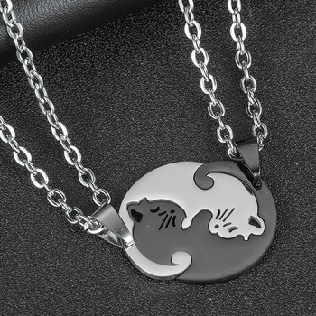 Hayvan kolye siyah beyaz kedi dikiş kolye basit dostluk hediye kalp şekli altın beyaz kedi çift takı kolye 2022